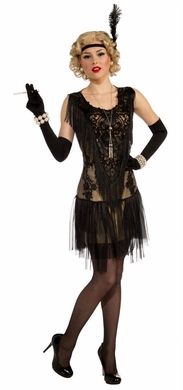 Candy Apple Costumes' 1920s style dresses and suits are made to wear to a speakeasy party, a murder mystery or any other juice joint where you need to look a bit spiffy. We also offer all of the essential accessories to complete the ensemble, from feather boas and thigh-high stockings for the dames to pretend-cigarettes for the wise guys. If you're looking for your little ones, we even carry pint sized Roaring '20s costumes made just for children. See more flapper costume options in our Kids' '20s and '30s costume department.
