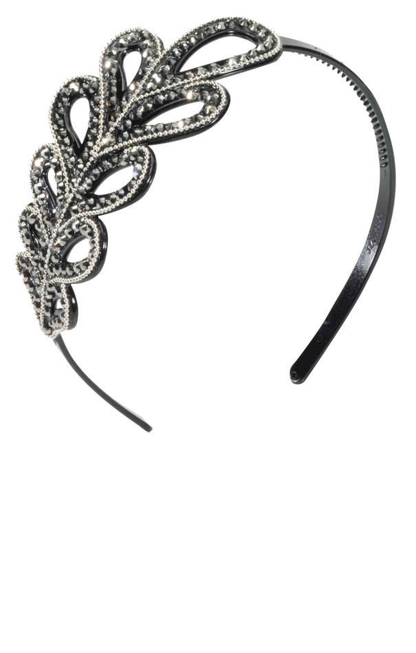 Black and silver sparkling headband, perfect for flappers and glamorous old Hollywood movie stars. One size adult.