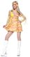 Be the prettiest flower child at the sit-in in this sexy adult 60s costume! Includes yellow psychedelic floral dress with halter neckline decorated with a silver peace sign, separate long sleeves, and matching headband. Boots sold separately.
